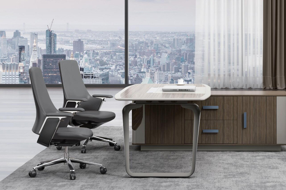 .优质西皮或巴西进口头层黄牛皮饰面.双层背弯板.高弹力海绵.铝合金扶手架连体扶手,配扪皮扶手面.配4档倾仰锁定功能.100#沉40mm电镀汽杆.350铝合金脚.60/25防震黑色PU轮