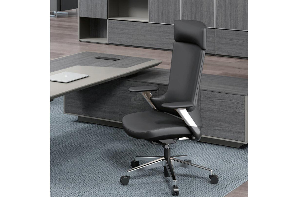 .优质西皮或巴西进口头层黄牛皮饰面.双层背弯板.高弹力海绵.PU面扶手.配4档倾仰锁定功能.100#沉40mm电镀汽杆.350铝合金脚.60/25防震黑色PU轮