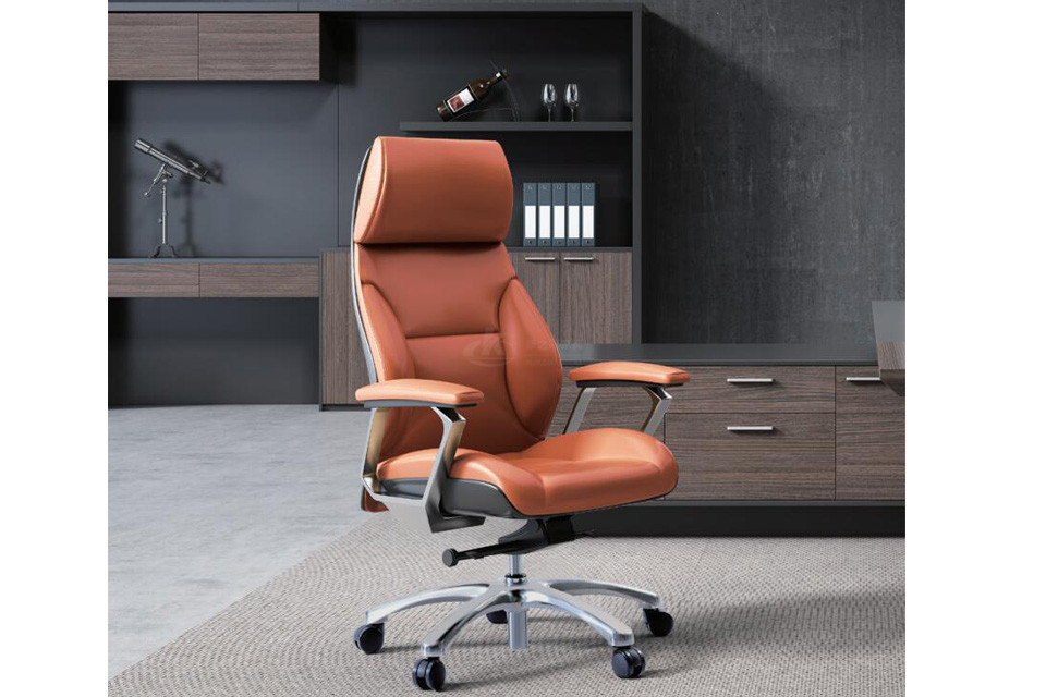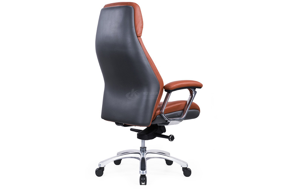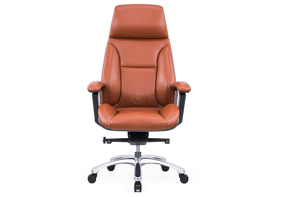 ·优质西皮或巴西进口头层黄牛皮饰面·背双层木板18mm,背棉高密度定型泡棉·坐双层18MM木板,高密度定型泡棉·底盘4级顷仰锁定功能·65#沉5公分电镀汽杆·350mm梅花铝合金脚·φ65/38MM PU大防震轮·铝合金扶手配软包扶手面