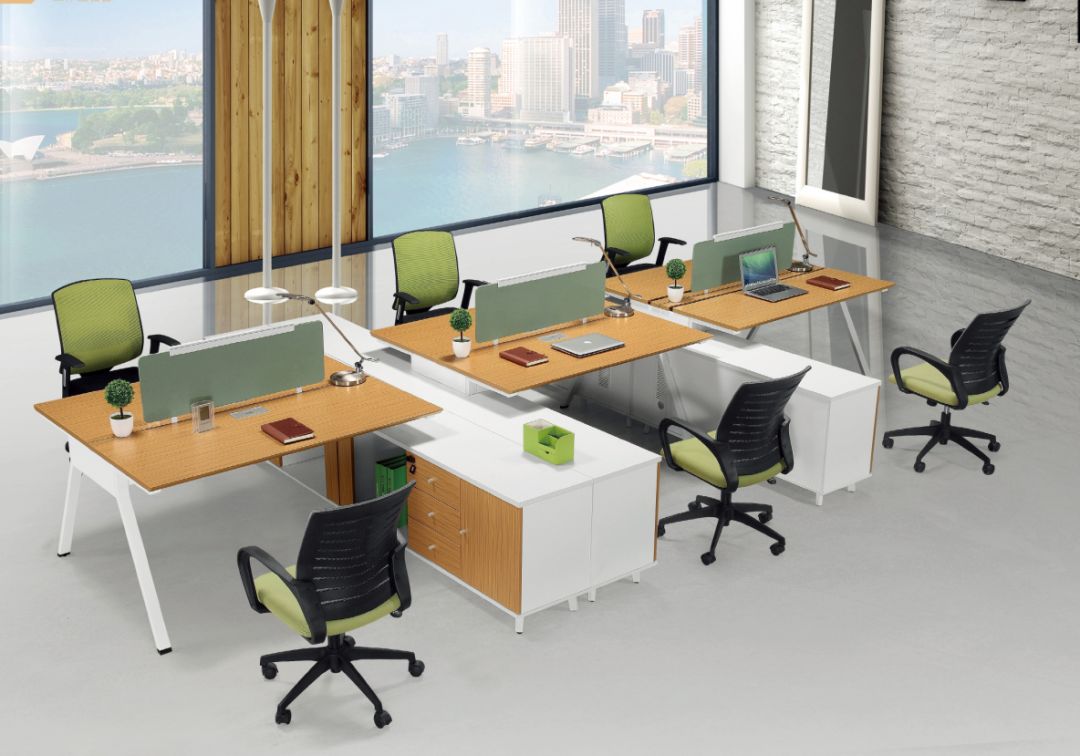 板式办公家具集合了实木办公家具的环保,和钢制办公家具的结实两种特点,可以称得上是高性价比的办公家具了。板材的环保是因为大部分板材不使用油漆,能够产生甲醛等有害物的只有胶水,但是像屏风办公桌在边沿处都是有严密的封边,杜绝了甲醛的释放。而在制造板材时,办公家具厂家把木屑通过高压机进行压缩制成整板,因此板材的密度远远大于实木,抗高压、抗弯折的能力非常出色。